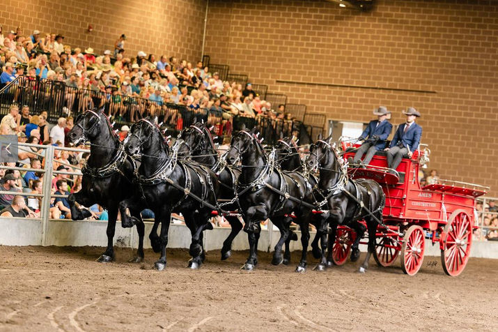six-horse hitch of Ames Percherons perform as ambassadors for
