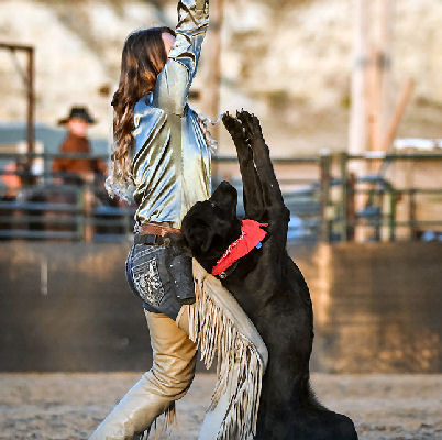 Walter ‘The Wonder Dog’ Straight from the mountains of Montana, Walter is a four-year-old Labernese who brings unexpected athleticism and heart to the arena. He loves to dance and perform in harmony with his human partner, Cory Furlong, in a partnership built on trust, love and a shared passion for the show.